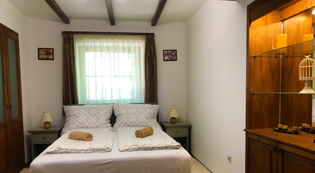 Ez a kényelmes, franciaágyas szoba tökéletes választás pároknak és kis családoknak, akik nyugodt környezetben szeretnének kikapcsolódni. A szoba alapfelszereltségéhez egy tágas, káddal ellátott fürdőszoba tartozik, valamint vendégeink számára közös nappali és modern konyha is rendelkezésre áll. Igény esetén pótágyat biztosítunk, így a gyermekkel érkező családok számára is ideális.